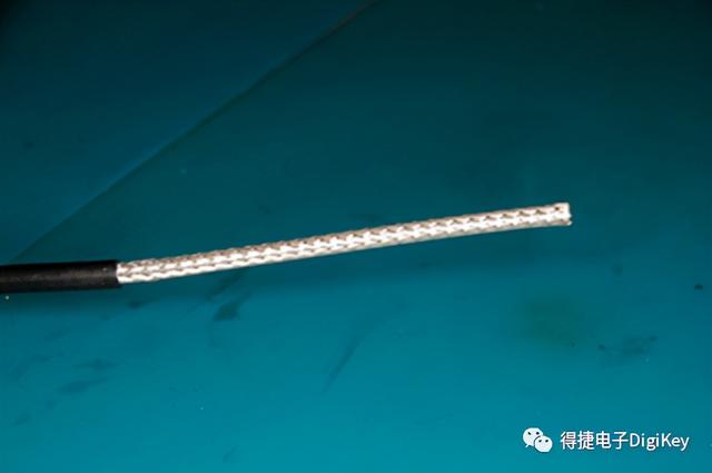 1.剥除所需长度的外绝缘层以露出内部编织层。如图所示,我们将图中样品切割了几英寸。