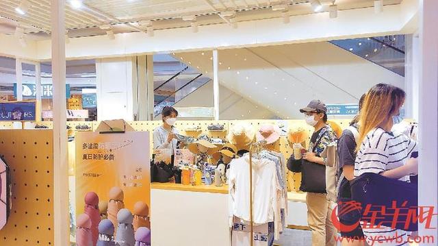 在广州天河万菱汇的蕉下门店前,两把撑开的遮阳伞的内层伞布上,印着精致的植物花卉图案。门店内不时有年轻女性顾客正在选购商品。正在试用一款遮阳帽的年轻女性小杨告诉记者,她自己并没有买过蕉下的产品,朋友购买过这家的遮阳帽、冰丝袖后,用后觉得防晒效果很不错向她推荐,这才顺道过来看一下。
