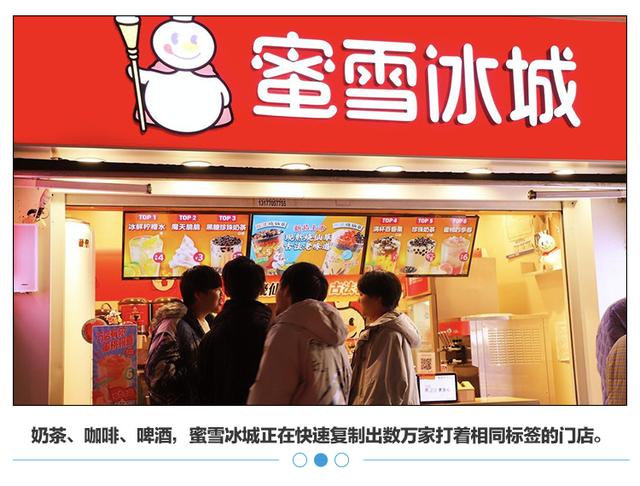 看似独立的故事,包在蜜雪冰城的城堡之中,却搭建了一个加盟帝国:不管卖咖啡奶茶还是酒,蜜雪冰城都能用一个输送原料和装修包的工厂,快速复制出数万家打着相同标签的门店。