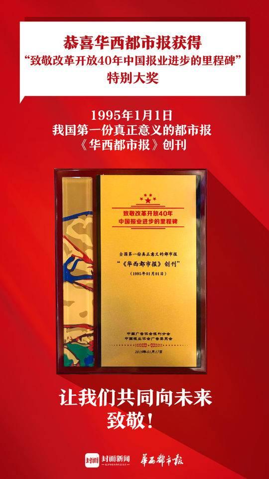 华西都市报获得“致敬改革开放40年中国报业进步的里程碑”特别大奖