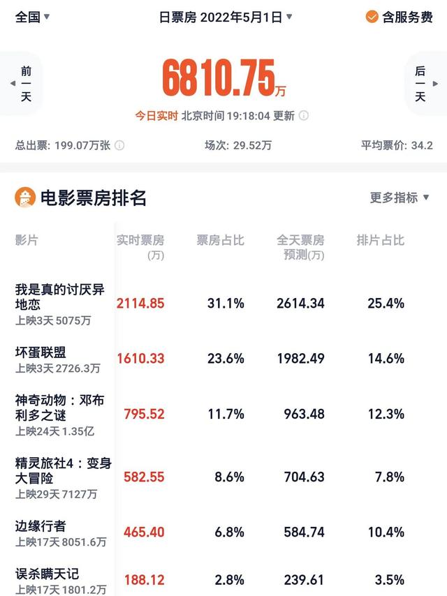 说回正题,今年影院预售总票房已突破1亿元,这一数据跟2021年五一档比简直是天壤之别,因为2021年五一档首日票房预售高达6亿。不想宅在家里的小伙伴可以选择去电影院看看电影,不过记得戴好口罩哦!