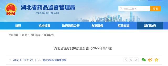中国质量新闻网讯 近日,湖北省药品监督管理局发布湖北省医疗器械质量公告(2022年第1期)。据公告,湖北省药品监督管理局组织对医用口罩等594批次产品开展了质量监督抽检。其中,被抽检项目全部符合标准规定的医疗器械产品有579批次产品。被抽检项目不符合标准规定的医疗器械产品有15批次产品。