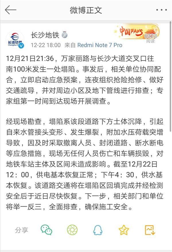 华声在线12月22日讯(记者 李昆励)12月22日下午,长沙地铁官方微博发布消息公布长沙万家丽路坍塌原因,并表示地铁车站主体及区间未造成影响。