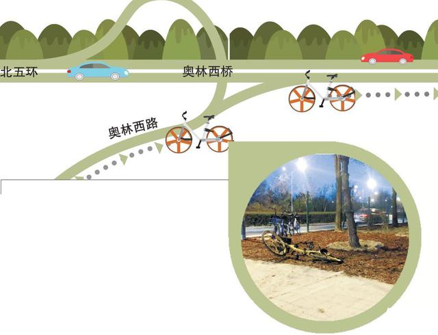 这处断头路还导致一个怪现象——北五环奥林西桥向东路段,辅路上的非机动车道竟是从奥林西桥的机动车匝道上生生接出来的,市民该如何把车骑上去呢?敢于骑着车和机动车抢匝道的人毕竟是少数,这也导致奥林西桥向东路段的非机动车道利用率极低,几乎形同虚设。