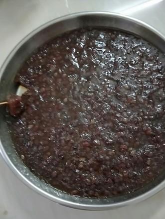 3.3、先把红豆用清水浸泡几小时,然后放电饭煲里煮熟,待用。