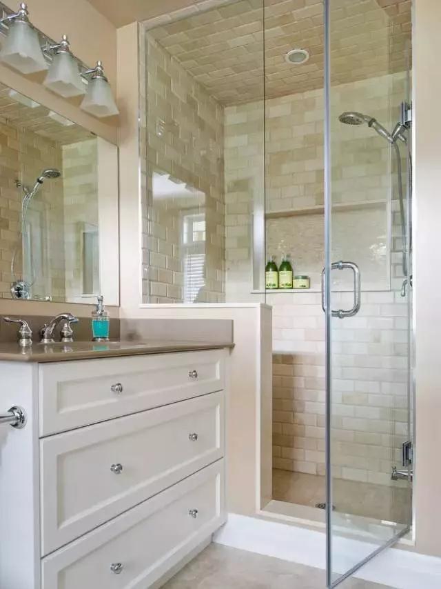 淋浴间的玻璃门应选用有机玻璃或钢化玻璃,以免伤人。如果玻璃是无色的,最好在相当的视线水平处贴上图案,避免撞坏玻璃。