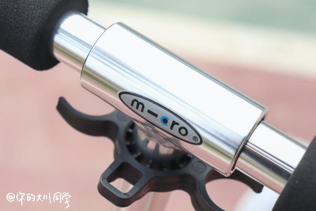 m-cro迈古“城市经典”系列滑板车共有黑、白 两种配色,男生可以选择更酷的黑橙配色,女生选择灰白更加优雅。手柄部分采用海绵材质,更加吸汗和防滑,把手尺寸比较适中,在长时间握持之后也不会劳累。