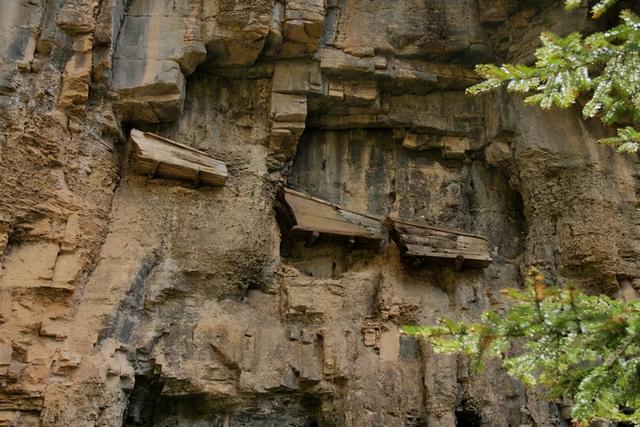 不过话说回来,无论崖葬有多么奇特,让现代人疑惑的是,悬棺的棺材都是一整根木头,将中间挖空做成的,并不是将人运上去,再拼接棺材的。这就说明,古人是要将棺材和人在下面装好,一起运上去的。那疑问就更深了,古人没有现代化工具是怎样将几百斤的棺材运送到悬崖峭壁的洞穴中的呢?而且据专家了解,江西龙虎山的每个崖洞里基本都是八口棺材,很有可能是家族墓。这就说明了棺材不是一股脑放进去的,是一段时间放一口这样进行的,这样就更得有一套完整的运输体系了。那么到底是什么样的流程呢,棺材是怎样放进崖洞里的?这是至今都没有解开的谜。