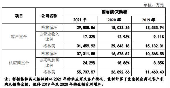 在客户重叠、供应商重叠、大额关联交易的背景下,格林循环的业务独立性受到质疑。
