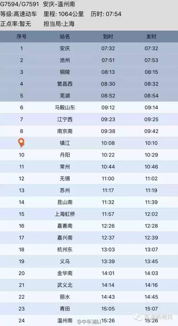 芜湖——温州 6小时38分。普通车次要12~13个小时!!