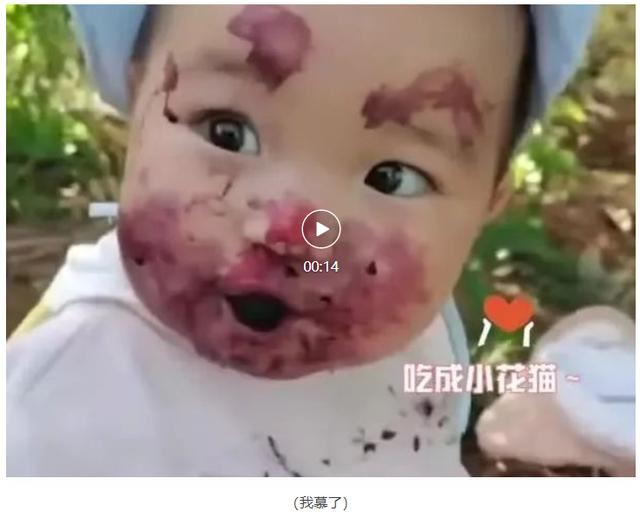 瞧这1岁娃抱着桑葚桶一口一个,一不留神就吃成了小花脸。