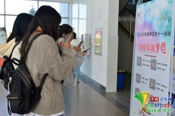 中国青年网北京11月15日电(记者 李华锡 通讯员 徐卓越)“‘双十一’狂欢大促!欲知详情请扫码进店咨询。”近日,安庆师范大学教学楼前印有“创业成就梦想”字样的海报,吸引了同学们的驻足围观。原来,从今年10月初开始,该校电子商务专业2018级的38名学生在专业课老师的指导下,在电商平台上注册了账号,学习如何开网店,通过分工经营,进行实战创业,当起了“小老板”。