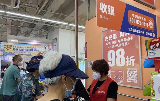 今天上午,记者来到位于大兴区南海家园五里的物美超市。在超市收银台,记者看到,超市为使用“北京通-养老助残卡”的顾客开辟了专门的结账通道。