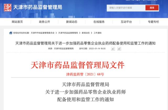 近日,天津市药品监督管理局发布的《关于进一步加强药品零售企业执业药师配备使用和监管工作的通知》(以下简称《通知》),鼓励多样化使用执业药师。