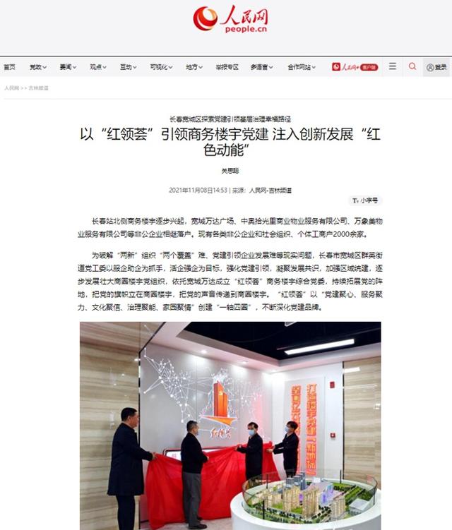 人民网吉林频道以“五红”党建为抓手,推出了“长春宽城区探索党建引领基层治理幸福路径”系列报道,全方位对长春市宽城区非公党建的新思路、新做法进行了深入报道。