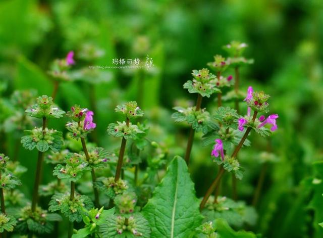 宝盖草的小花真是极美,紫色的小花,跳跃在莲座状的叶片上,像是音乐盒上翩翩起舞的芭蕾女孩。
