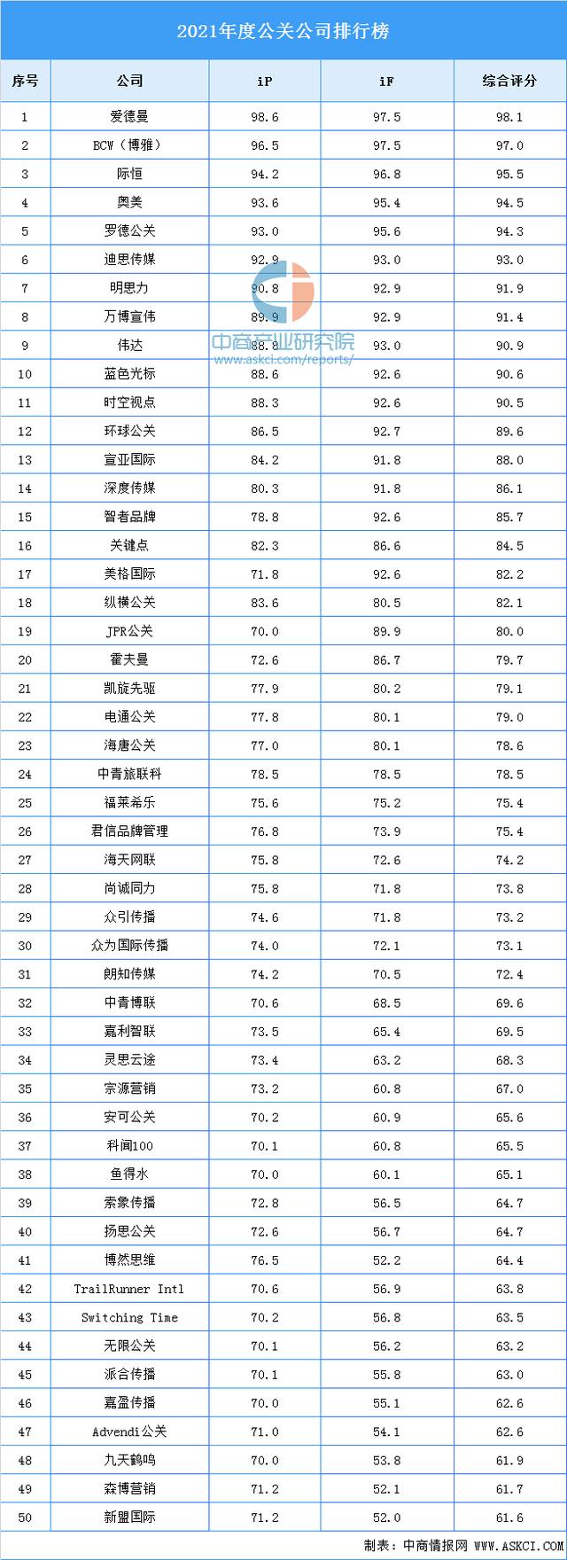 爱德曼、BCW、际恒、奥美、罗德公共、迪思传媒、明思力、万博宣伟、伟达、蓝色光标入围前十。