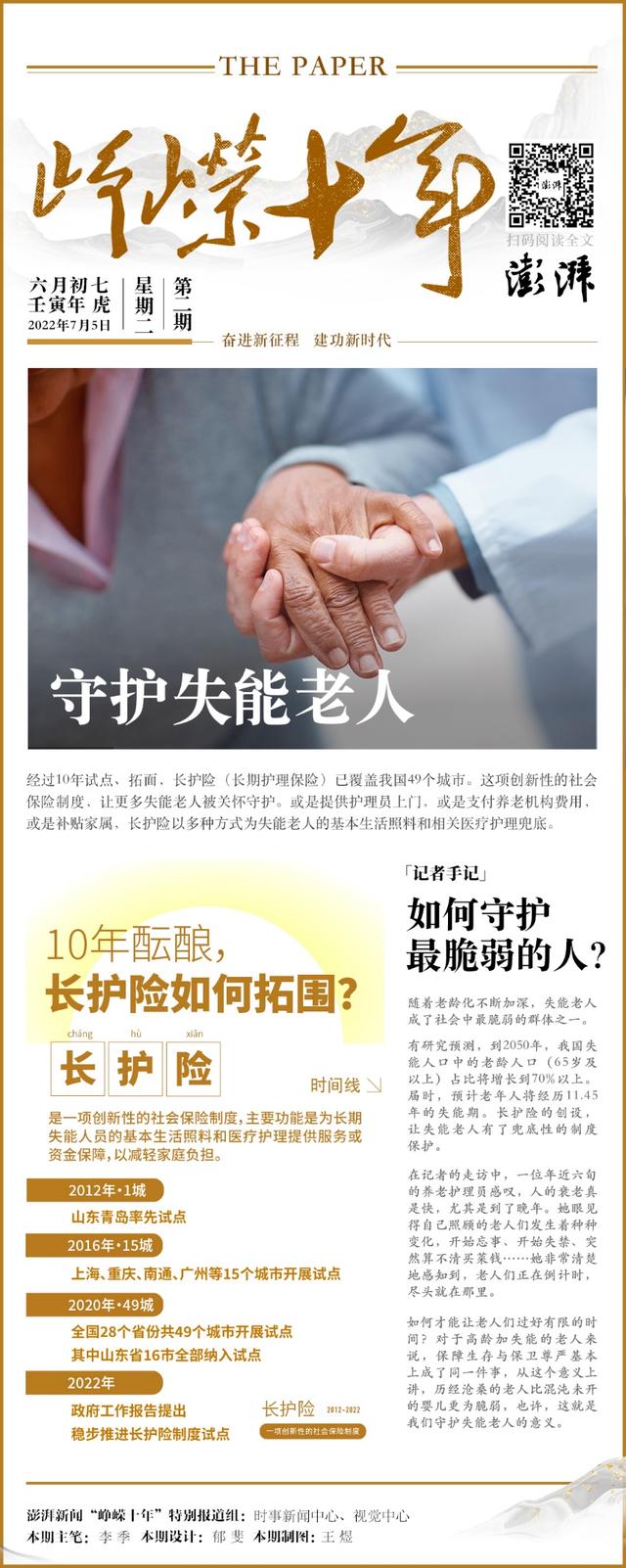 2022年政府工作报告提出,稳步推进长护险制度试点。今年是长护险政策试点的第10年,这项兜底性的养老制度设计,正在撑起新时期我国社会保障网络的新纬度。
