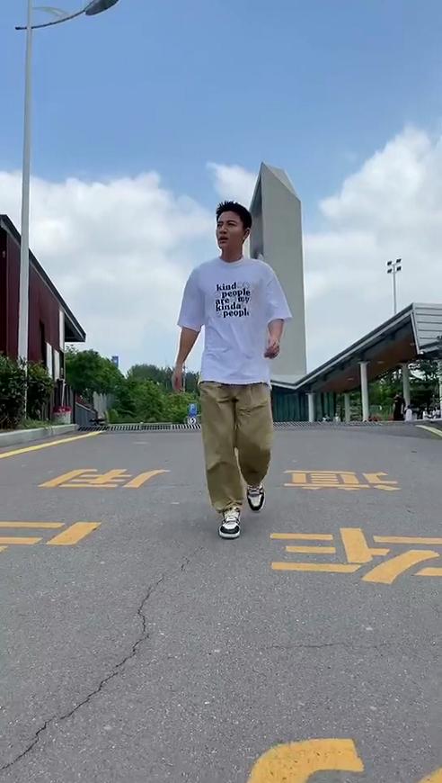 画面中的贾乃亮身穿白色的T恤,搭配卡其色的休闲裤,步伐矫健的走在消防通道上,阳光帅气的他也赢得了大家的称赞。随后的贾乃亮也摆出了一个超人飞行的动作,脸上也露出了灿烂的笑容。紧接着又摆出了一个哈利波特骑扫把的动作。