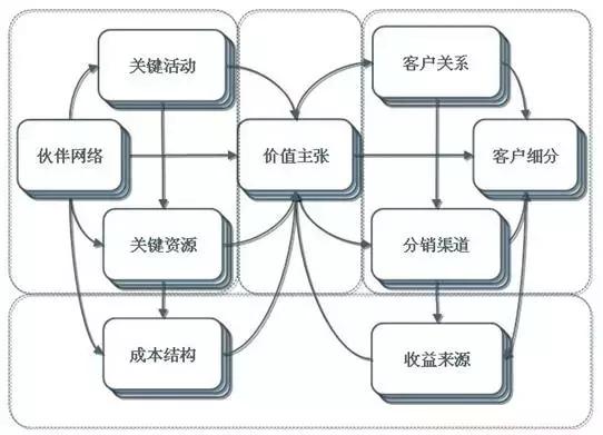 我们还是要把奥斯特瓦德的商业模式模型拿出来,作为一个想要对商业模式有所了解的商业人士,闭着眼睛也必须把这个图背出来。