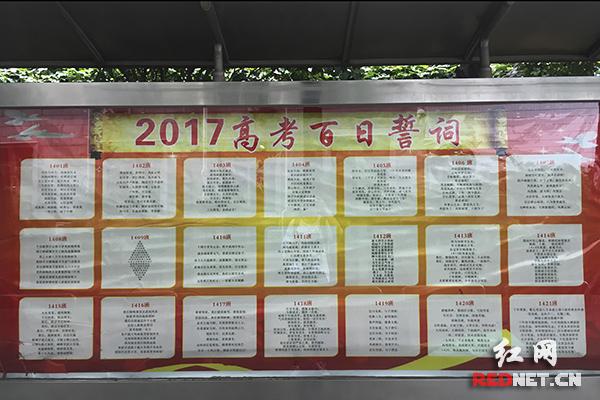 长郡中学校园里,粘贴着《2017年高考百日誓词》的玻璃窗。