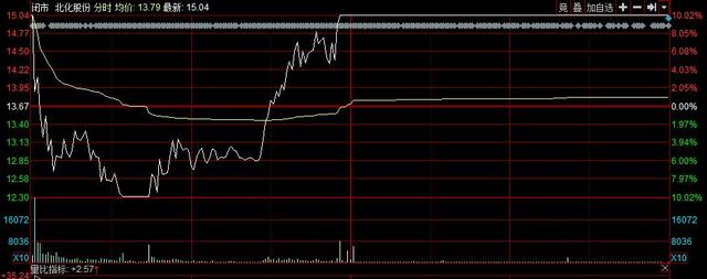 3月16日,北化股份日内大幅波动,走出“天地天板”,录得连续第四个涨停,报15.04元,成交额21.51亿元,换手率超28%。