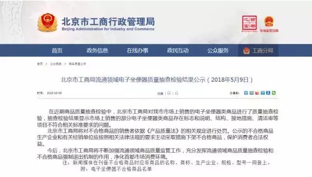 5月9日,北京市工商行政管理局公布流通领域电子坐便器质量抽查检验结果。结果显示14款电子坐便器不合格,其中,科勒旗下“novita 诺维达”、乐家卫浴“Roca”、法恩莎“FAENZA ”、华艺“Huayi”等知名品牌产品登上黑榜。