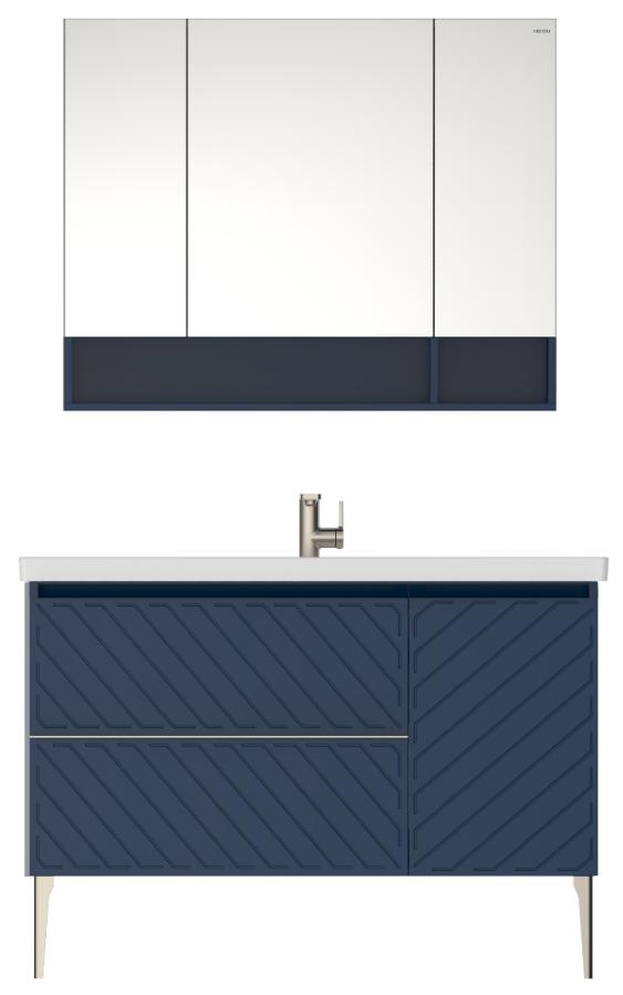 配趣系列浴室柜颜色组合或简洁淡雅或深邃沉静,迷迭白、海军蓝、哑光白、西米灰等,在无形中传递出生活的质感和温度。譬如,迷迭白,似一朵白云漂浮于人间,爽净明亮中寻觅着浪漫温馨;海军蓝,似一波奔涌的海浪,沉静内敛中积蓄着强大力量......