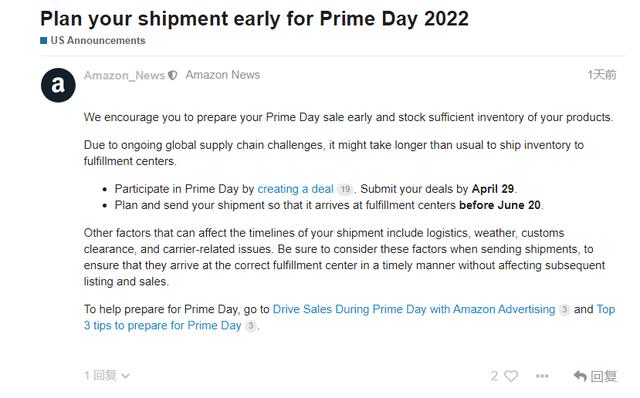 这两则公告,也在告诉卖家,2022年的Prime Day 要来啦!各位卖家也可以开始规划了。