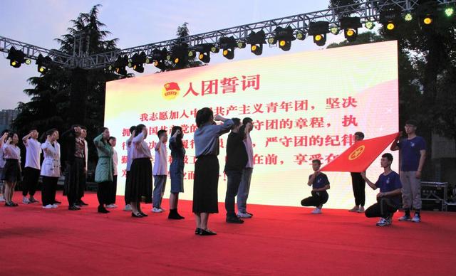 大会伊始,104位新团员以最洪亮的声音,面向鲜艳的团旗,举起右手,庄严宣誓,以奋进的姿态光荣地加入中国共青团。