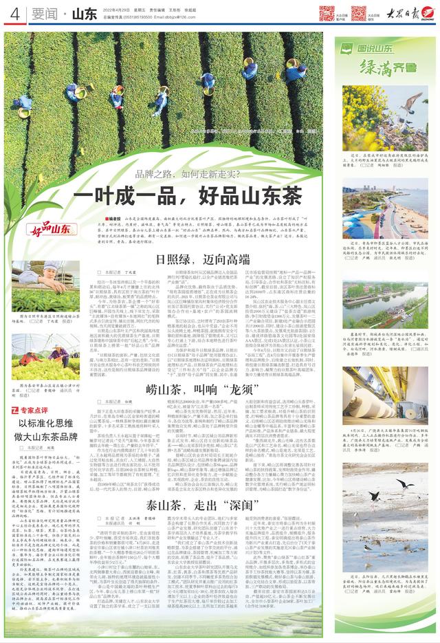 山东是全国纬度最高、面积最大的北方优质茶叶产区。因独特的地理环境和生态条件,山东茶叶形成了“叶片厚、耐冲泡、内质好、滋味浓、香气高”等突出特点,日照绿茶、崂山绿茶、泰山茶等已成为市场知名度较高的地方名茶,其中日照绿茶、泰山女儿茶上榜山东第一批“好品山东”品牌名单。然而,与南方知名茶叶品牌相比,山东茶从产量、营销方式到品牌打造等方面,都有一定差距。如何进一步提升山东茶品牌影响力、做优茶品质、做大茶产业?近日,本报记者到日照、青岛、泰安进行探访。