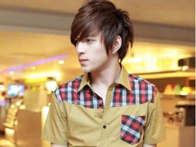 2、这款男士深栗色短直发斜刘海发型设计是偏梳的一款深栗色发型,这款发型从正面看是十分的酷酷的感觉,这款发型的颜色衬托着皮肤是非常的白,深栗色是很适合他的一款颜色。
