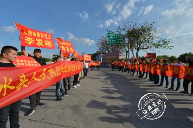 下午4时许,李发彬的家人、乡亲守在水头高速路口,焦急等待。“来了!来了!”只见李发彬下车,他的启蒙教练王德兴抢先上前一把抱住,其他人一拥而上,将李发彬团团围住,献花的、恭喜的,热情的阵仗,让李发彬直呼“太感动了”。
