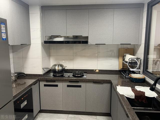 最后一点就是颜值以及档次方面,全铝橱柜本身就带有木纹纹理,加上是金属基材的,用于厨房当中,不管是装饰性还是档次方面,都能高出一截。