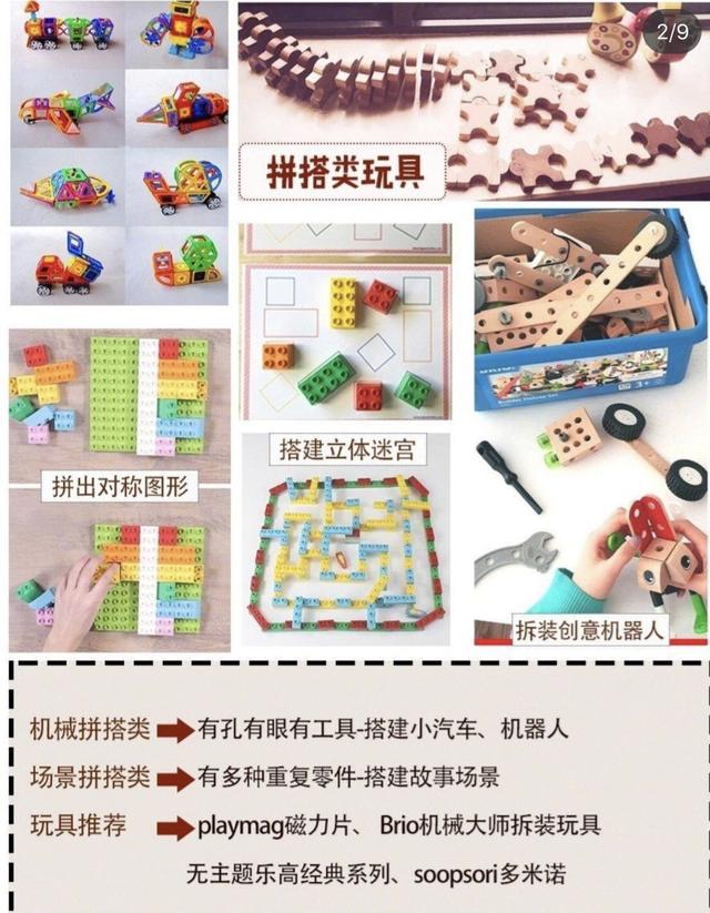 不要买有特定形态的拼搭类玩具,而且要买完全开放式的无固定拼搭规则的玩具。