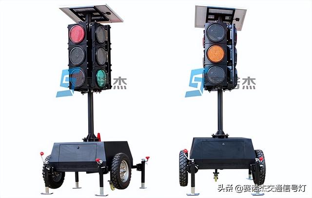 为适应交通需要,在突发情况下更好地维护正常的交通秩序,赛诺杰研发生产了3米4面3单元移动式太阳能交通信号灯。可以广泛应用城市公路,施工道路等无人指挥的地方,进行车辆交通疏导,并且无需地埋接线电源设备,利用太阳能供电,节能环保。产品图片如下图所示: