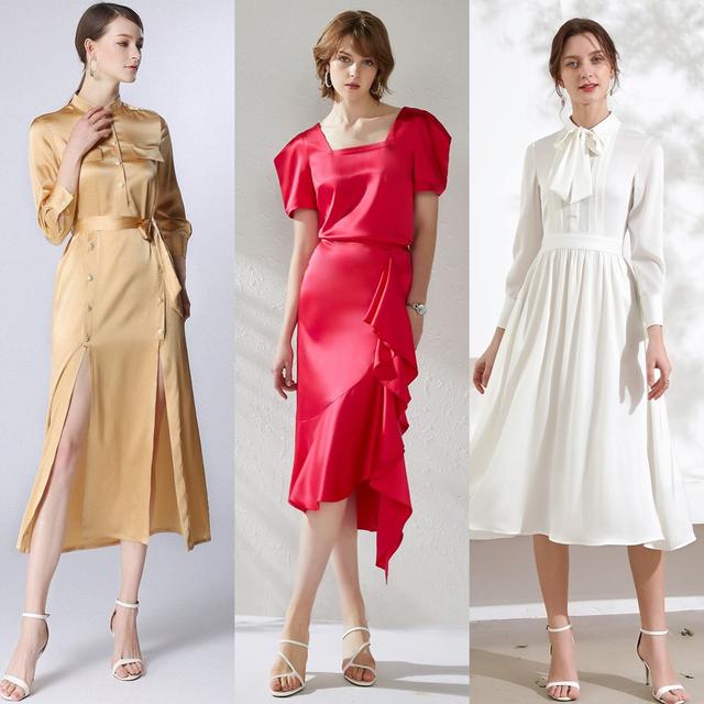 对于真丝裙颜色的挑选,主要是看自己的穿衣风格了!如果你想穿得足够简约干练,就可以选择黑白灰等基础色,足够简练,也足够百搭。