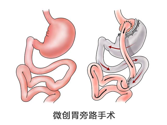 吴良平教授介绍减重手术的金标手术胃旁路手术时说:“胃旁路手术是将胃分成两个部分,关闭大部分胃的功能,改变肠道结构,从而进一步降低消化能力从而控制吸收。手术后重新形成的胃囊容积约30cc,与小肠绕道相连,就可以实现限制进食量和减少食物吸收。并且手术后食物的流向也会发生改变,身体对营养的吸收不断减少,在进食热量小于消耗热量的情况下,就可以达到减重的目的。并且减重手术解决的不仅仅是肥胖,胃肠道重建后也改变了肠-胰岛轴激素的分泌,从而改善糖代谢,就可以治疗糖尿病。”