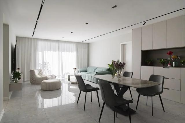 不过乍一看挺冷的,屋主丹丹说小时候的房子都太挤了,现在就喜欢这样大、敞亮的感觉,刚好小小满足一下她“断舍离”的计划。