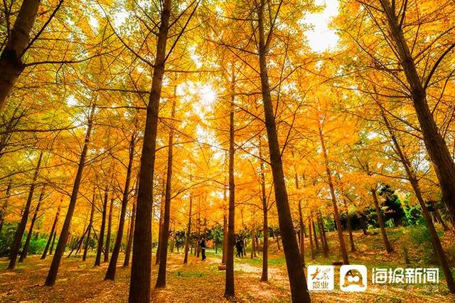 霜染东厅叶,彩林映深秋。步入十一月,秋意浓厚,烟台东厅百亩银杏林迎来一年中的极盛时节,以满树金黄为秋日烟台着墨绘染。是时候到东厅走走了,看一场诗意斑斓,听一席秋日私语。11月2日上午,大众网·海报新闻记者来到位于烟台福山区东厅街道的福山鲁东园艺场银杏林景区,感受这一年一季的盛景。