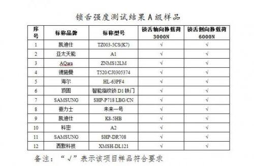 按照国家强制性标准GB21556-2008《锁具安全通用技术条件》对A级锁的要求,29款样品锁的锁舌长度均符合要求(大于等于20毫米),但锁舌强度仅有12款样品锁符合要求。此外,比较试验参照机械防盗锁锁芯破坏试验的方法,使用螺丝刀、镊子、手锤等普通手工机械工具,对样品的机械应急锁芯进行破坏直至被打开,同时记录破坏开启的时间。