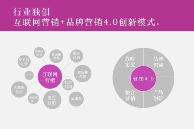 是互联网时代背景下的新型品牌营销咨询机构和全方位广告服务公司,由国内品牌营销界知名专家组成。为众多行业知名企业提供品牌营销策划服务,主要业务包括:品牌市场策划推广、新媒体营销策划、品牌设计、广告代理服务、公共关系服务等。业务覆盖广泛,先后帮助多家企业实现品牌腾飞梦想;结合市场最新发展趋势,以全新的中国品牌形象和行业领先的服务理念让更多中国品牌走向世界。让中国品牌能在全球市场与更多同类品牌抗衡--“让世界爱上中国品牌”为宗旨,并迅速成长为中国品牌营销咨询和广告行业新势力。