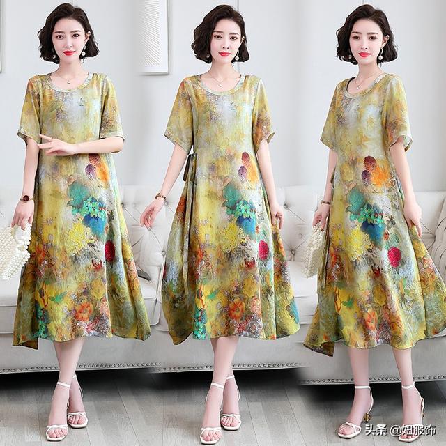 简约时尚减龄圆领印花休闲舒适连衣裙,靓丽个性的印花装饰,减龄好看。气质圆领,温婉柔美,修饰脖颈。简约舒适的直筒袖,清新舒适透气。飘逸下摆,灵动优雅,做工非常的精细。